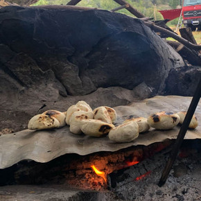 Wir konnten noch in letzter Minute über die Bezirksgrenze nach El Bolsón, dort unsere Tanks füllen und einkaufen. Seither stehen wir mit Fidel ausserhalb der Kleinstadt auf dem Privatgelände einer Deutschen Aussteigerfamilie und harren der Dinge. In den ersten Tagen waren noch weitere Reisende aus Liechtenstein, der Ostschweiz und Berlin hier gestrandet. Schnell kamen Abenteuer- und Teamgeist auf und wir haben uns auf diesem wunderschönen Stück Land am nördlichen Rand Patagoniens gut eingerichtet. Hängematten wurden aufgespannt, eine Kino-Leinwand zwischen Bäumen befestigt und eine mobile Sauna am Fluss aufgestellt. Seither spielen wir Abends oft Karten, schauen Filme im Waldkino oder sitzen gemütlich am Lagerfeuer. Tagsüber verlegen wir Wasserleitungen, bauen Holzregale für die neue Werkstatt, pflücken Mirabellen und Brombeeren oder fällen Bäume und hacken Holz für den Winter. Einkaufen dürfen wir selber nicht. Alle paar Wochen kauft die Besitzerfamilie das Nötigste für uns mit ein. Daneben kochen wir Konfitüre oder backen Brot, um unsere Vorräte zu erweitern. Struktur braucht der Mensch.